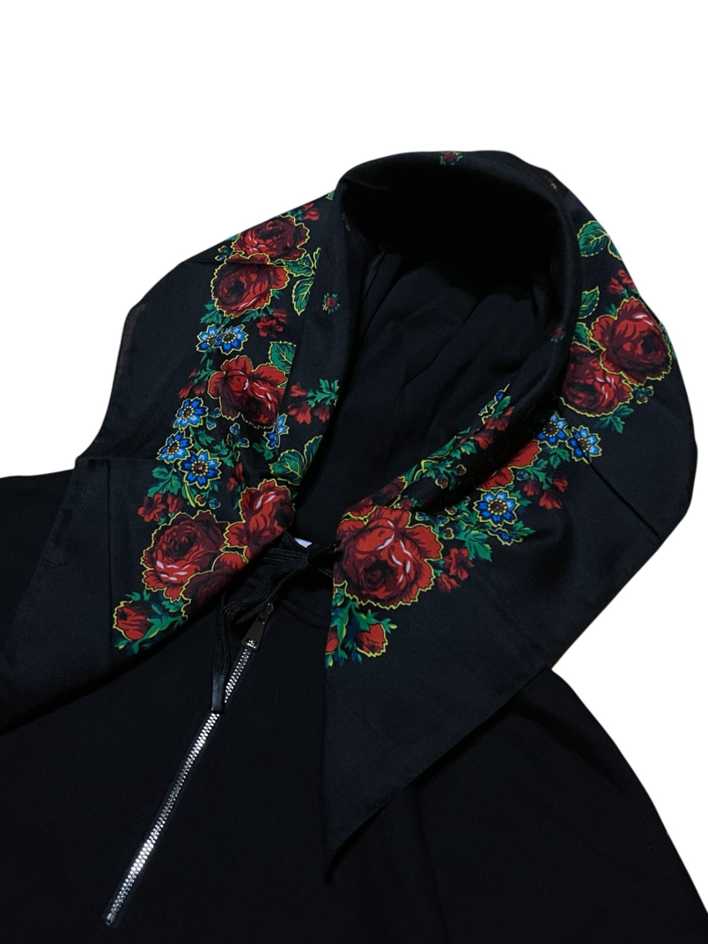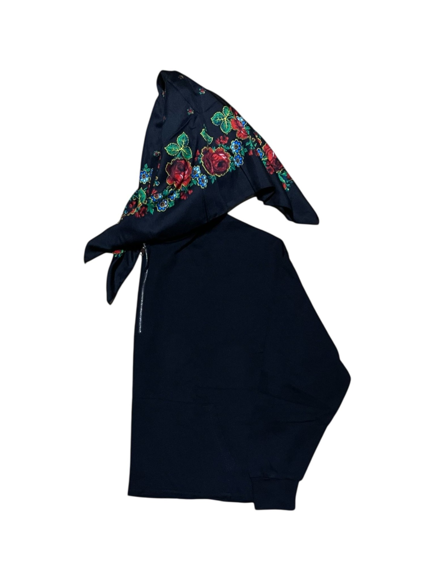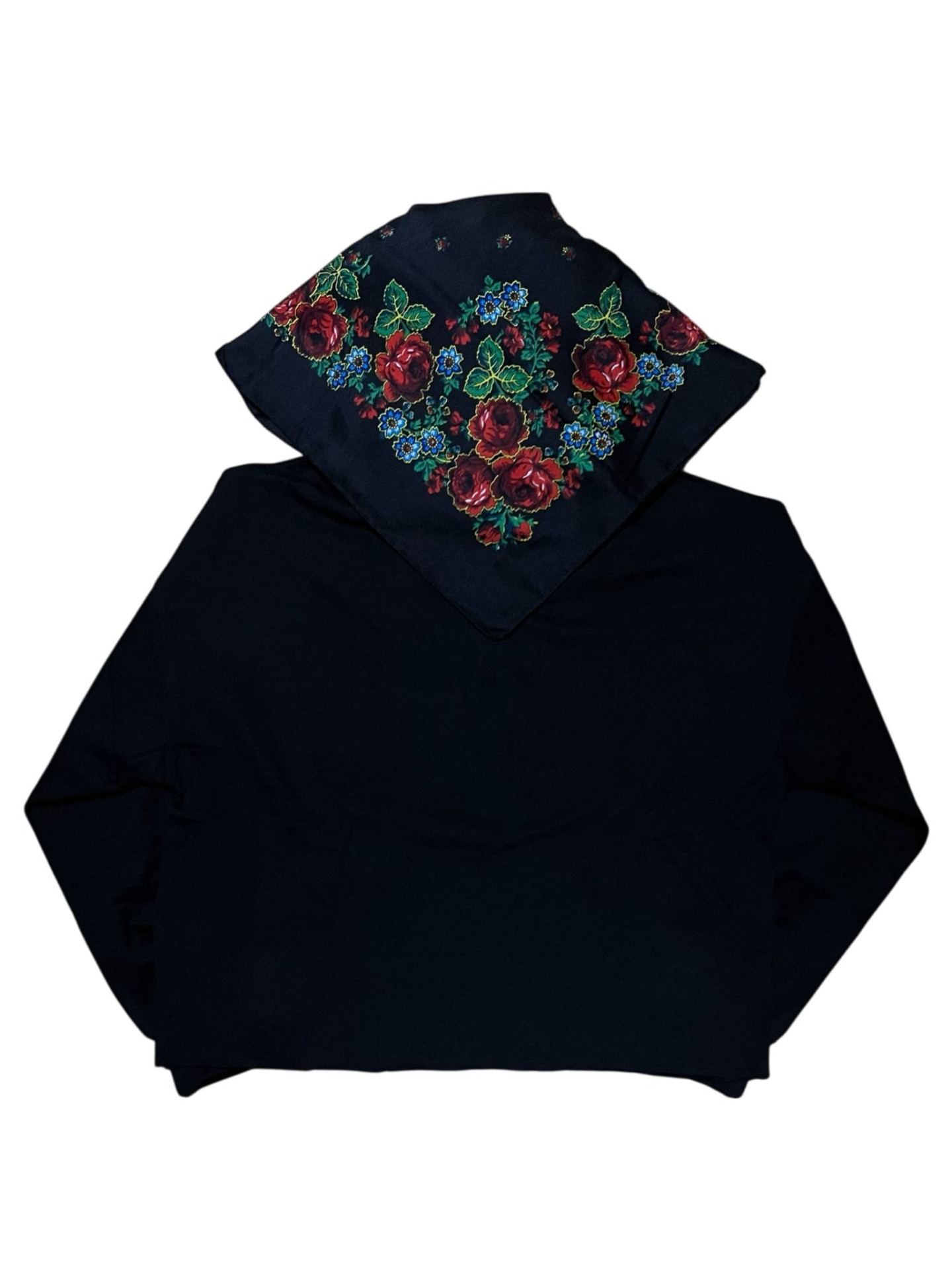 Hanoracul Babushka aduce împreună confortul streetwear-ului modern și eleganța simbolurilor românești, o reinterpretare contemporană a portului popular.