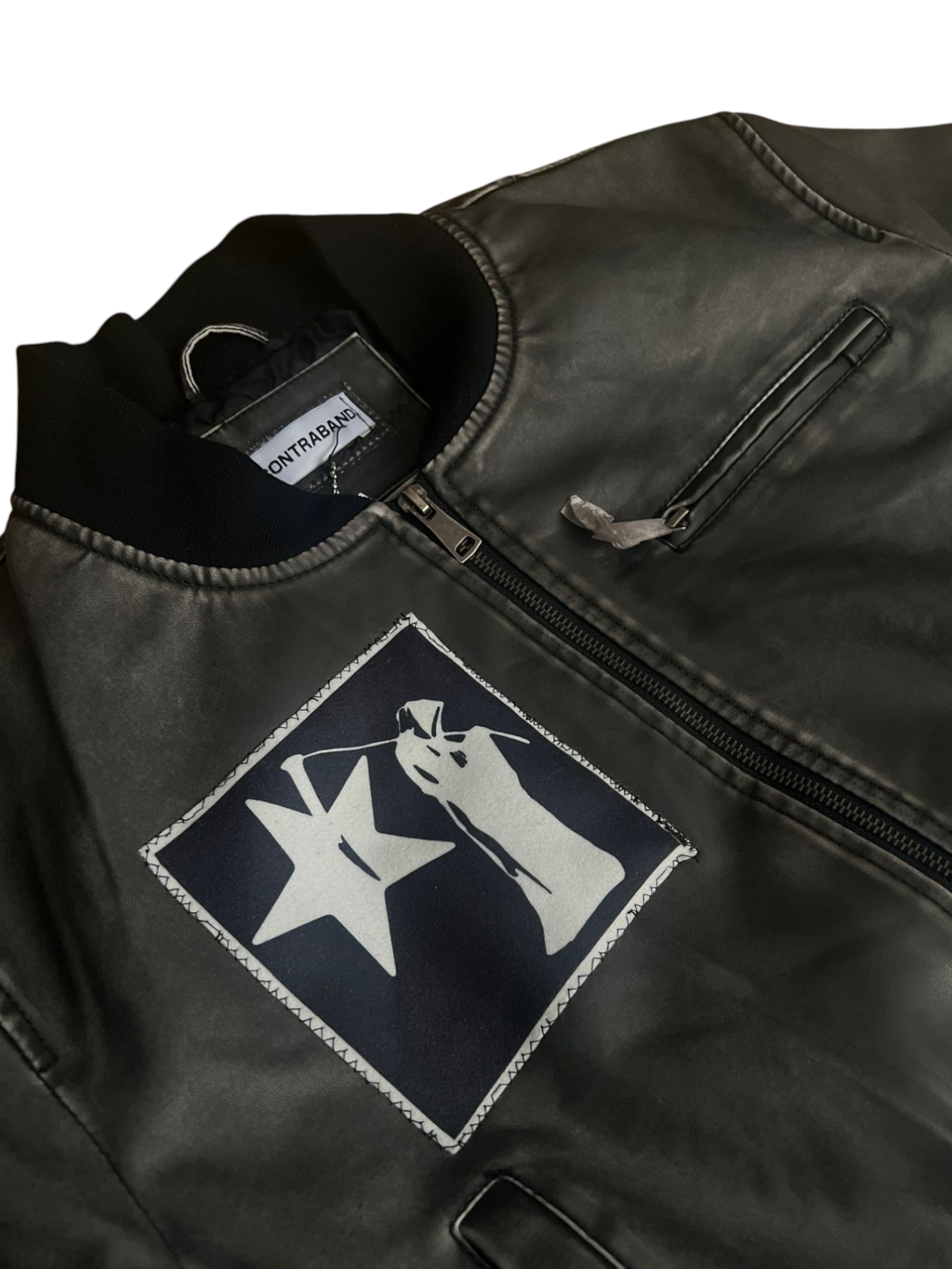 Geaca este cusută manual și decorată cu patchuri inspirate de estetica Playboi Carti, aducând un vibe dark, rebel și autentic – perfect pentru scena streetwear actuală.