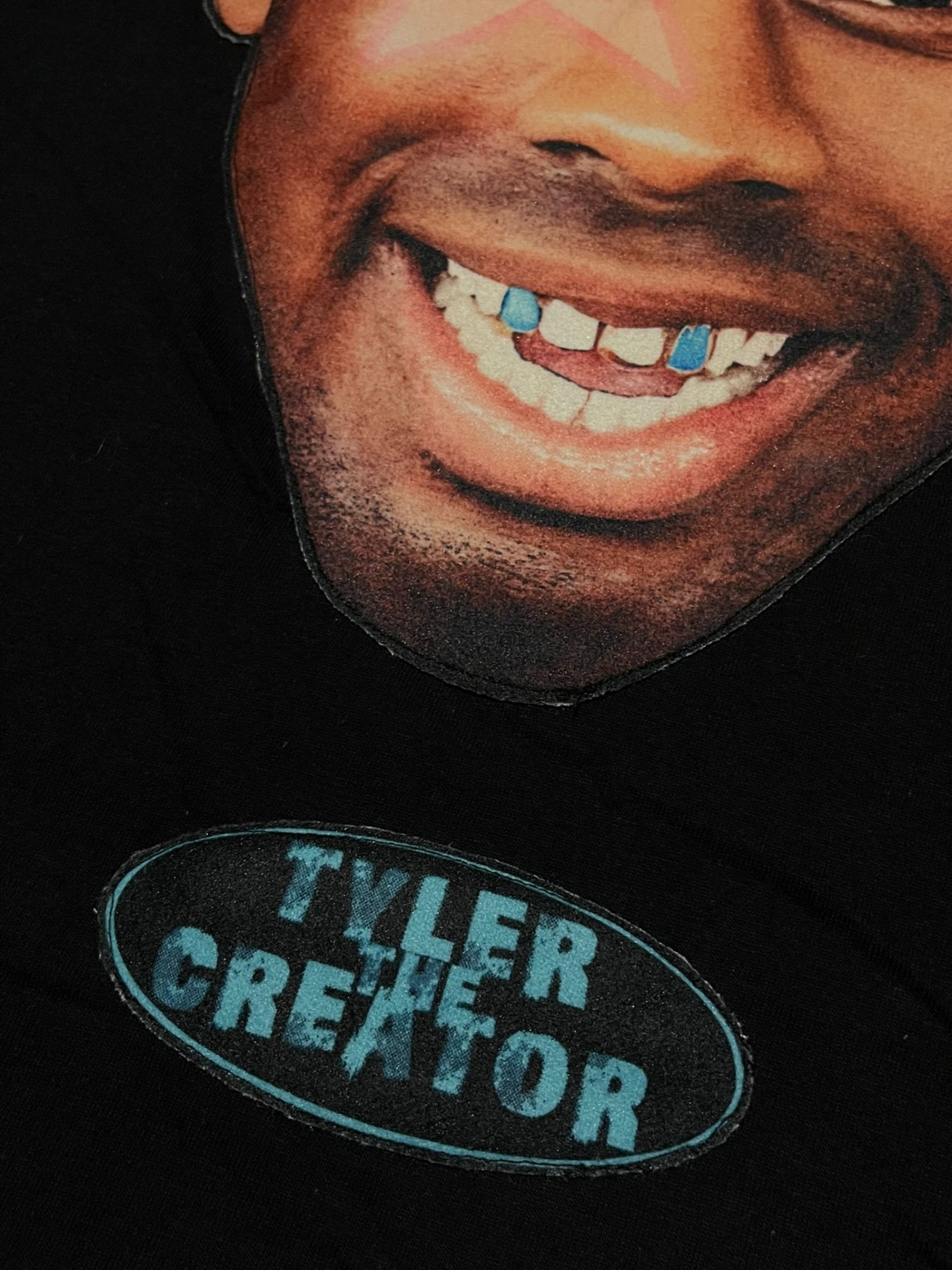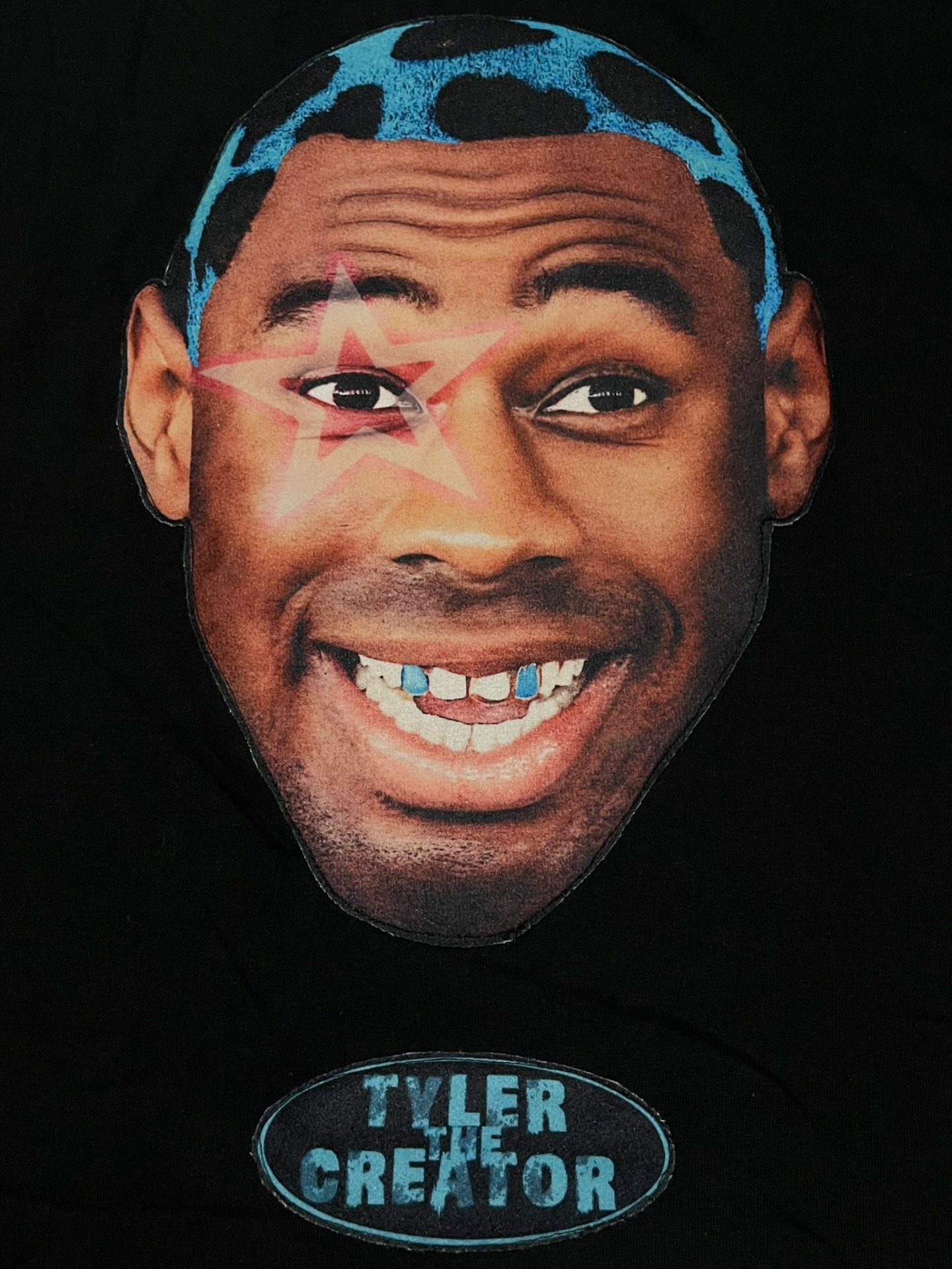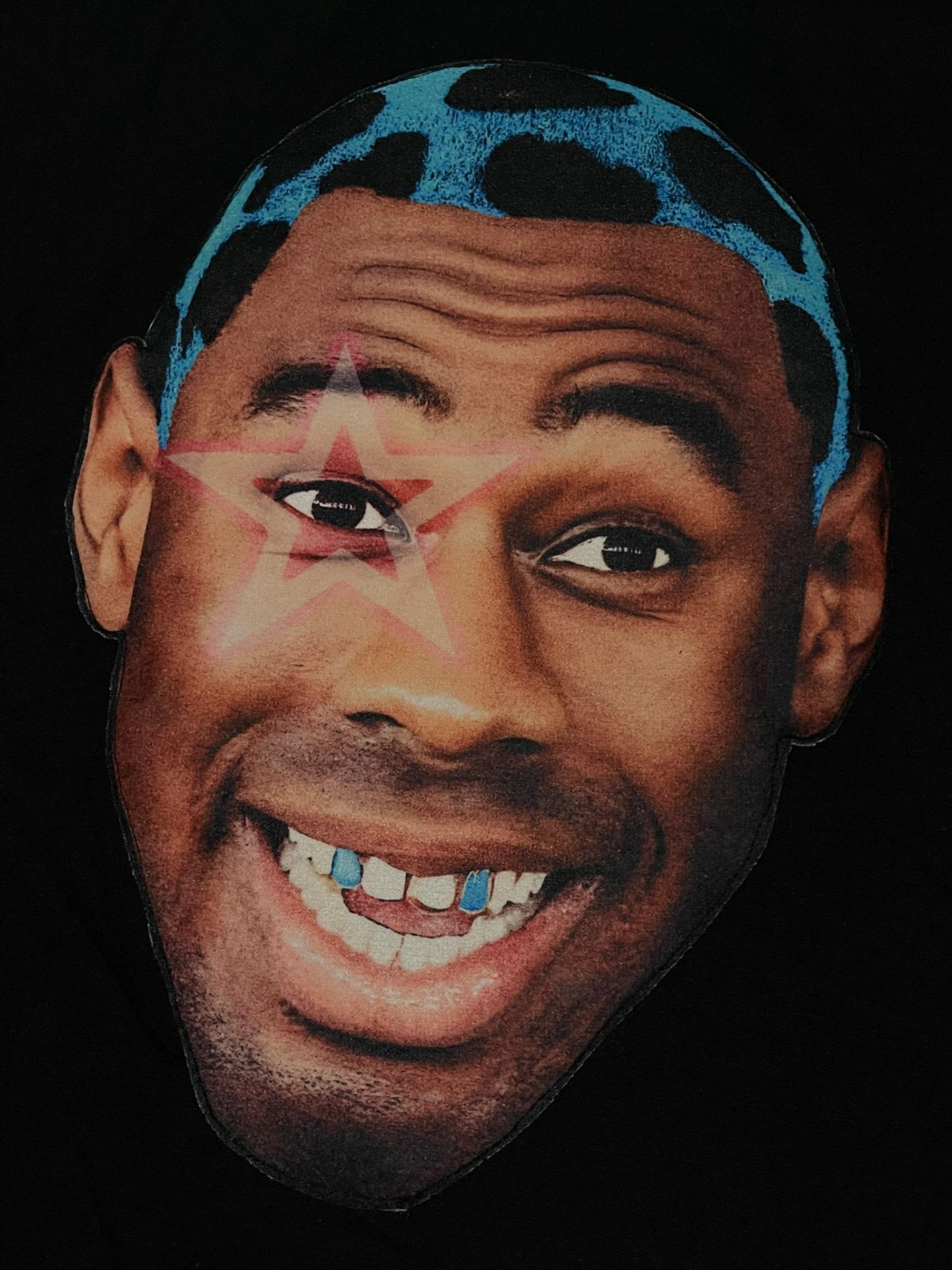 Pe partea frontală, designul grafic vibrant redă chipul expresiv al lui Tyler, cu un efect vizual spectaculos o combinație între artă modernă și cultura streetwear.